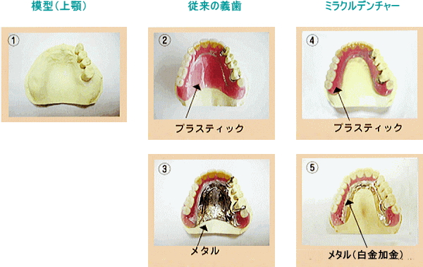 ミラクルデンチャーの金属床は義歯の変形を防ぎ、義歯をうすく出来ることから価値のあるものです。